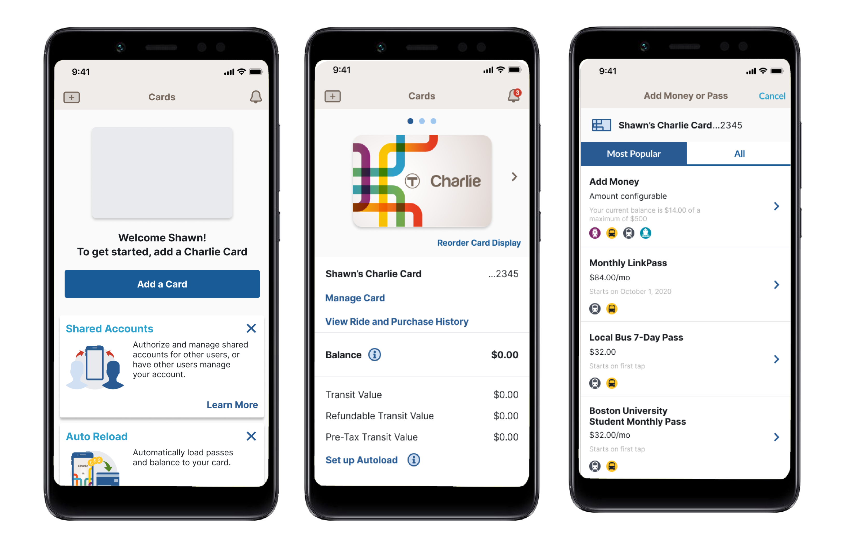 A mobile app that allows Boston commuters different ways to pay for transit and manage their account.